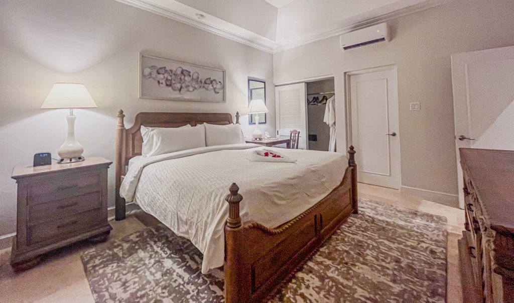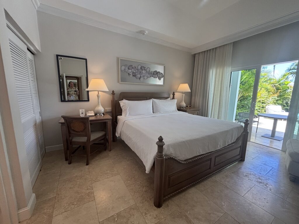 For the best beach views in the club level, book this penthouse room on the top floor of the Riviera Building. It features a beachfront balcony with ocean views and a bistro set, as well as a 4-poster mahogany king bed, sitting area, stocked bar, and marble bathroom with shower/tub combination.